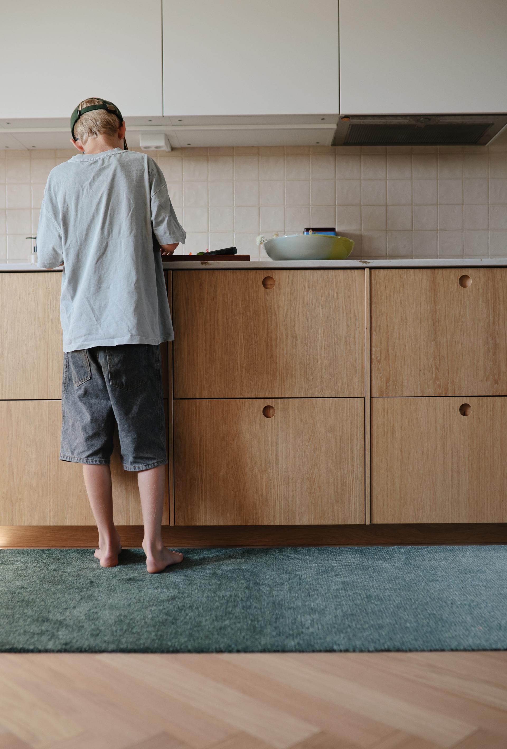 Shop Mix TeklanDis Ocean speiler de rolige fargetonene i Nordsjøen, med en myk og behagelig overflate som også gjør den perfekt til kjøkkenet.