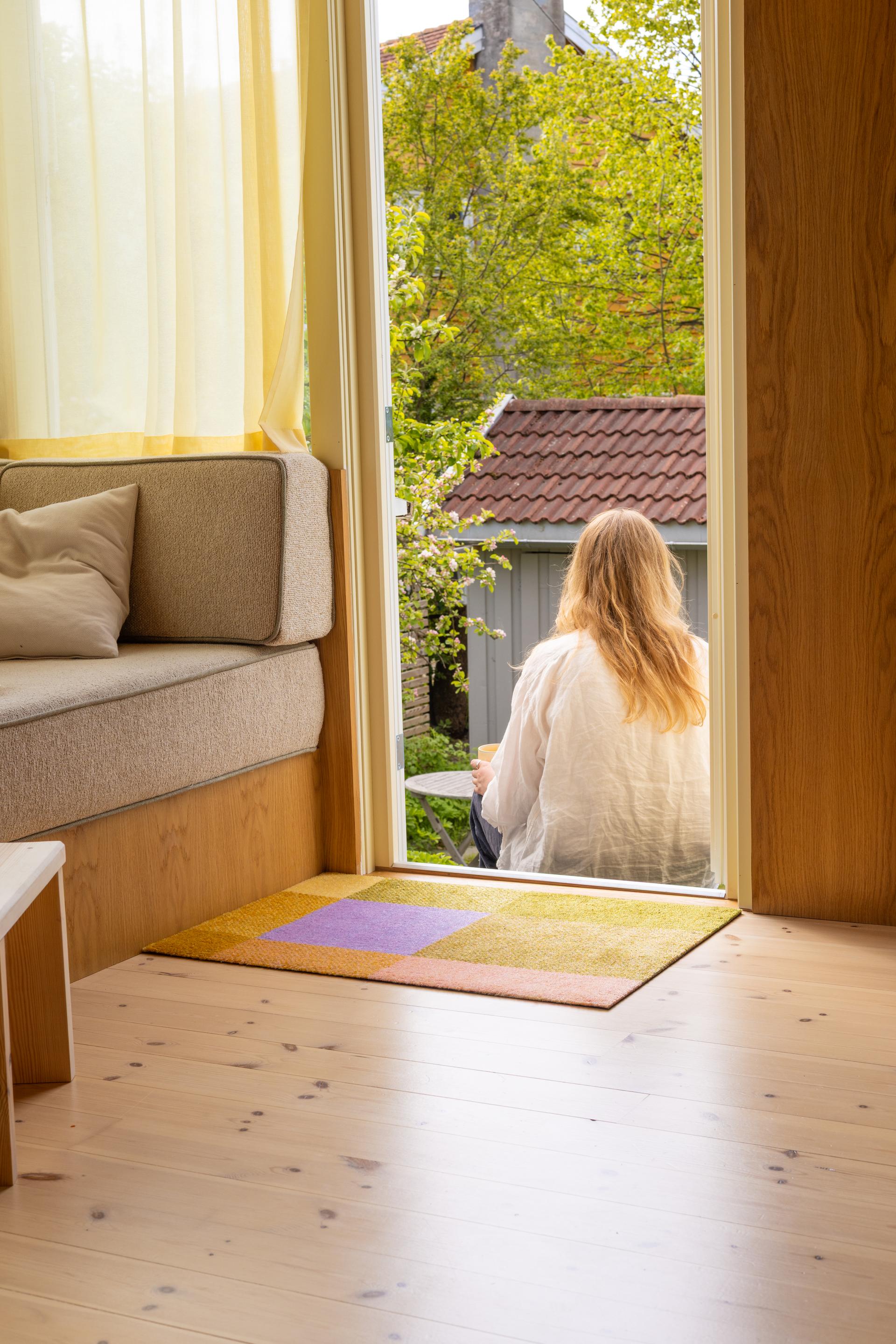 Shop Mix MeadowKombinasjonen av syrinlilla og olivengrønt skaper et energisk uttrykk som kompletterer et levende og dynamisk interiør, samtidig som den tilfører inngangspartiet et hint av retro sjarm.